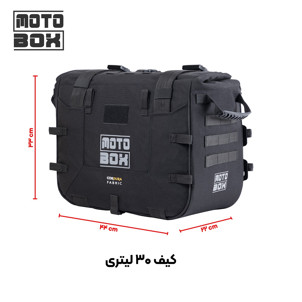- ابعاد کیف ۳۰ لیتری: نما با طول ۴۴ و عرض ۳۳ پهنای کیف ۲۲ سانتیمتر